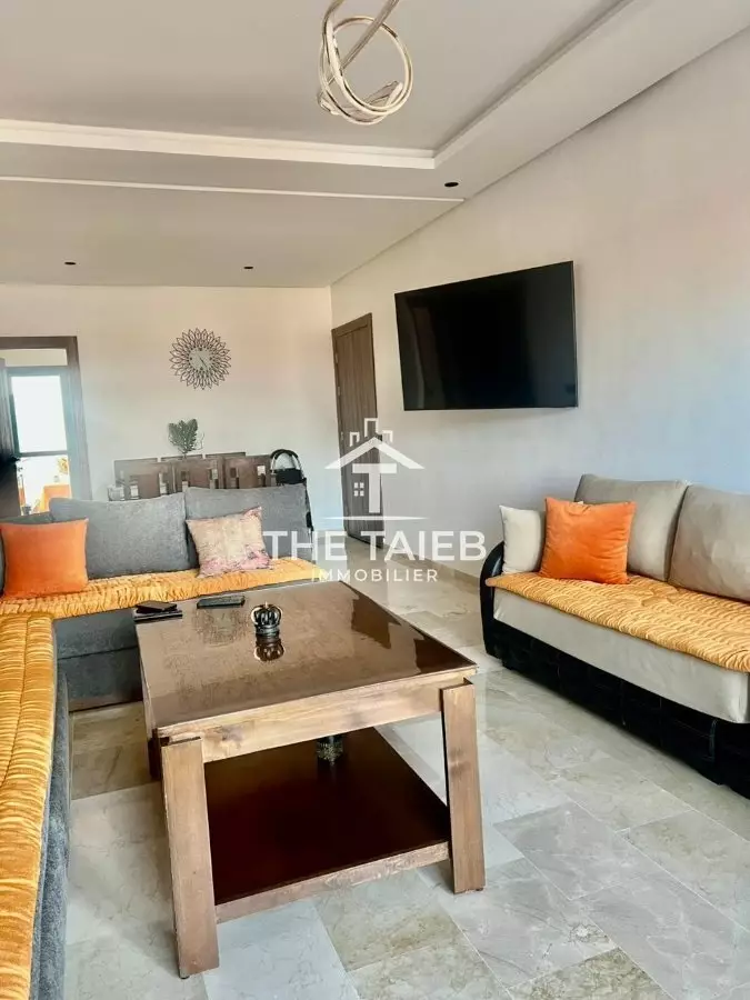 THE TAIEB IMMOBILIERE vous présente une Appartement meublé à louer – Résidence Aymen Beach Bel appartement meublé composé de 2 chambres, 1 salon, une cuisine équipée et 2 salles de bain. Situé dans une résidence sécurisée et calme, avec vue piscine et vue mer, idéal pour un séjour confortable.