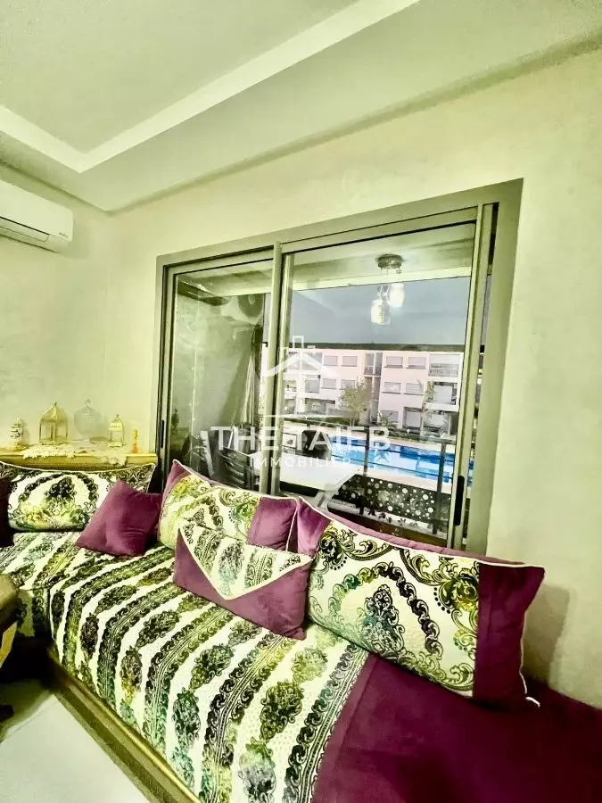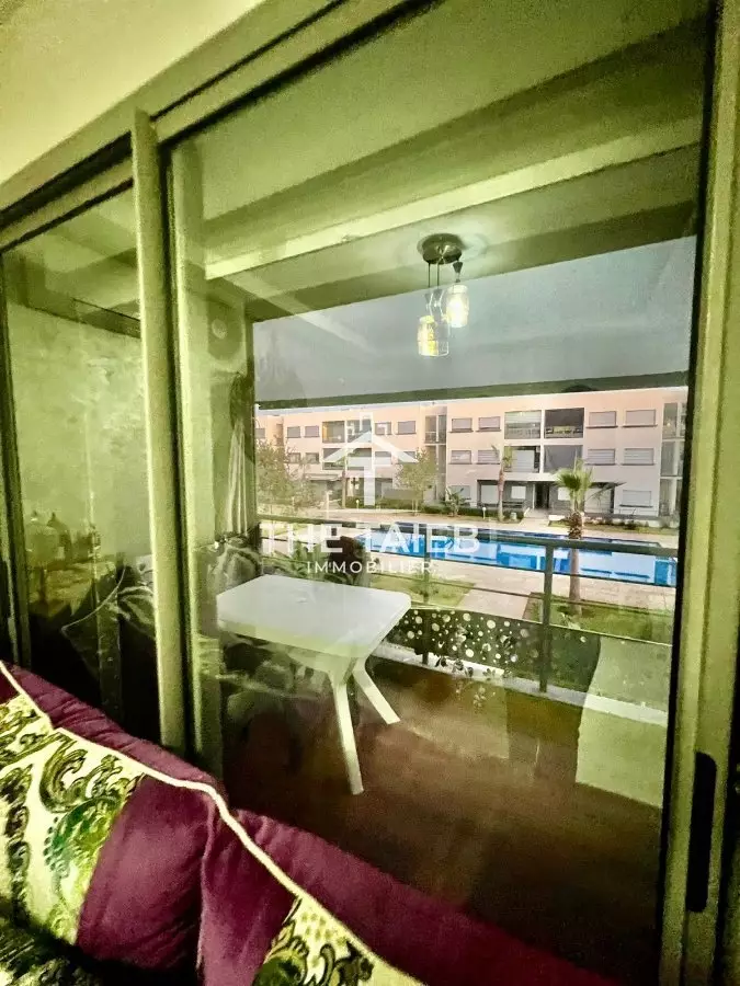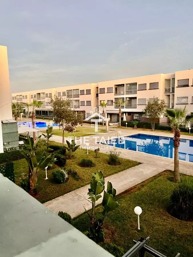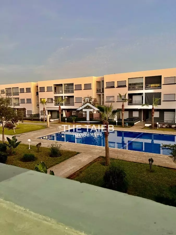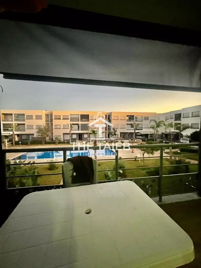 THE TAIEB IMMOBILIER vous présente une Appartement meublé à louer à Magic House el Mansouria, comprenant : 2 chambres, 1 salon 1 salle de bain, avec vue sur la piscine et cuisine entièrement équipée. Idéal pour location courte ou longue durée, dans une résidence sécurisée et espaces verts, offrant confort et tranquillité dans un cadre agréable.