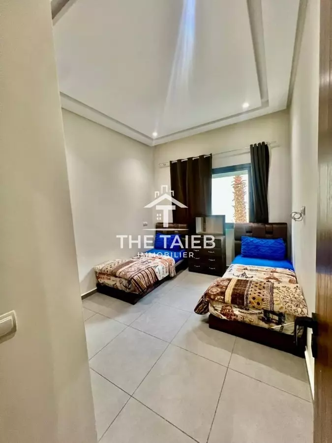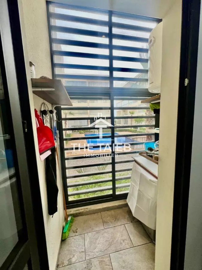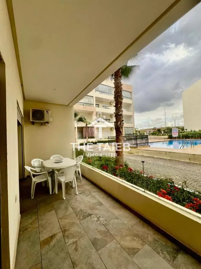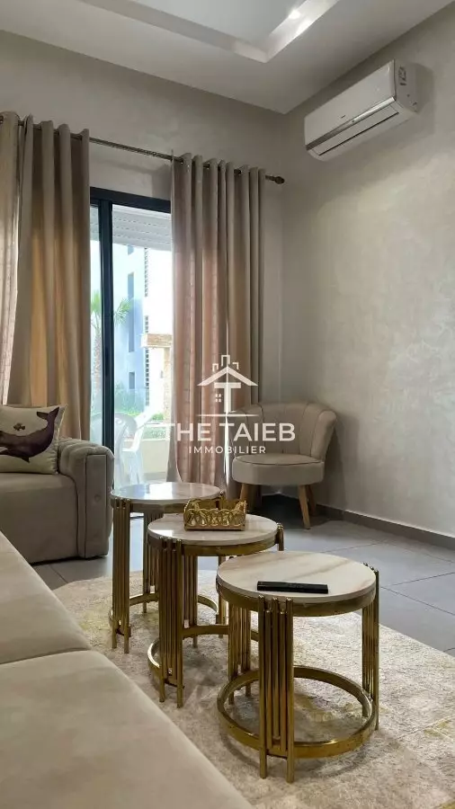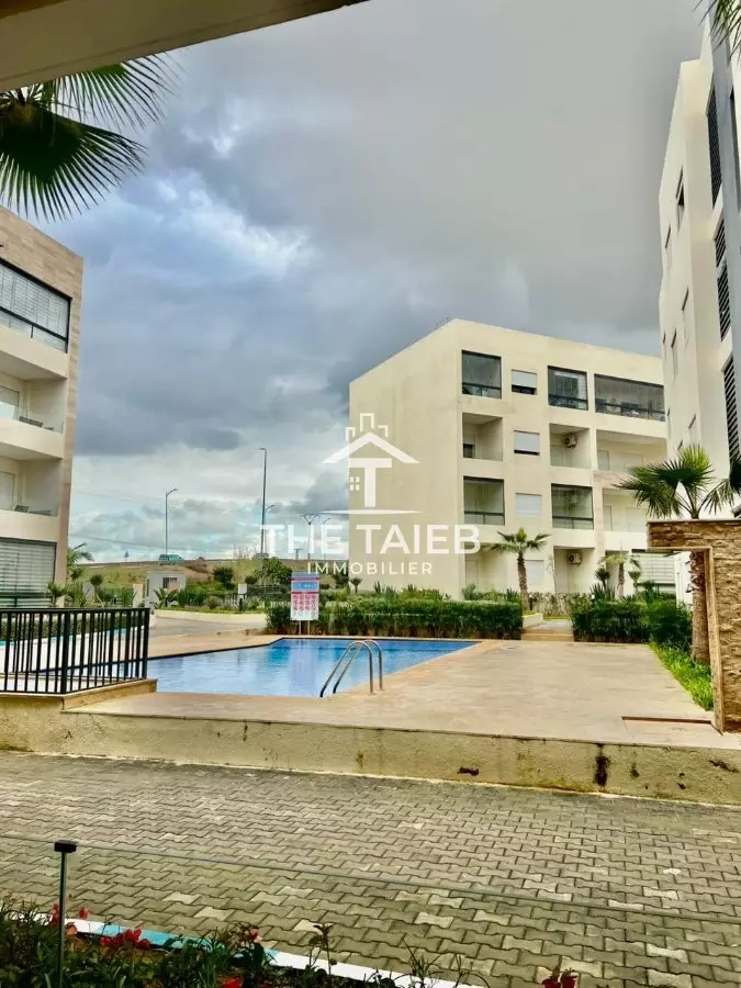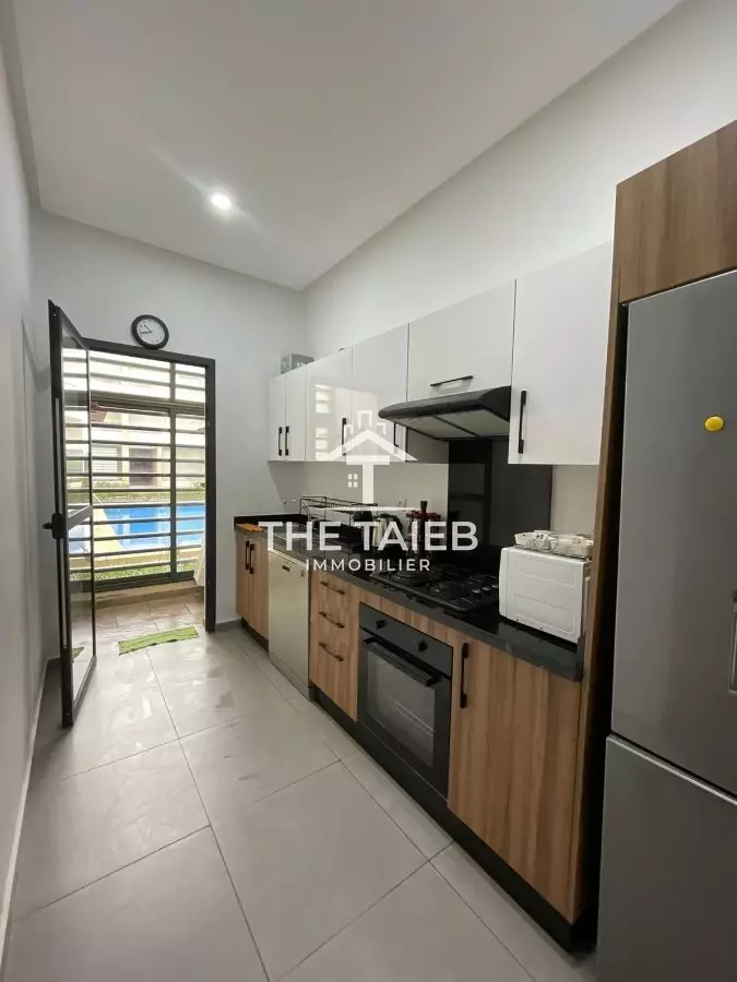 THE TAIEB IMMOBILIER vous présente une Appartement meublé à louer à Magic House el Mansouria, comprenant : 2 chambres, 1 salon 1 salle de bain, avec vue sur la piscine et cuisine entièrement équipée. Idéal pour location courte ou longue durée, dans une résidence sécurisée et espaces verts, offrant confort et tranquillité dans un cadre agréable.